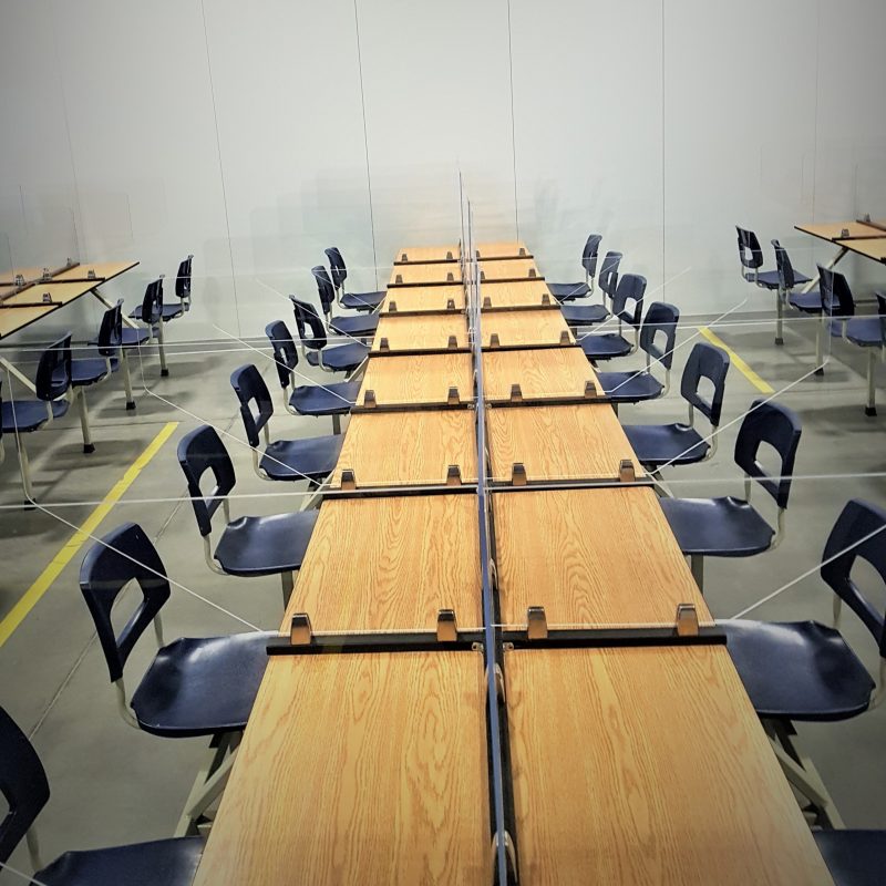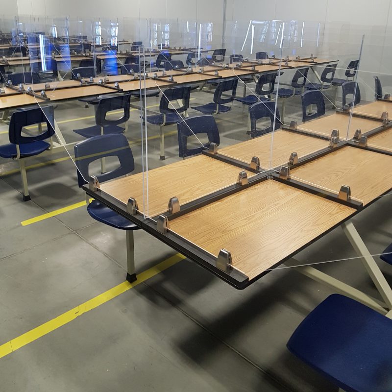 - Pour la question du plexisglass, nous sommes avec vous pour sécuriser vos tables de cafétéria, vos bureaux, vos réceptions, etc.