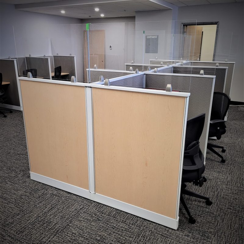 - Nous avons aussi une solution pour la pandémie : rehausser la hauteur de vos panneaux avec des plexis. Cela a l’avantage de conserver votre luminosité tout en protégeant vos employés et à un moindre coût. En effet, au lieu de mettre des panneaux vitrés liés au système de cubicule, nous vous proposons notre solution plexis qui s’harmonise parfaitement avec le système tout en étant plus léger visuellement.